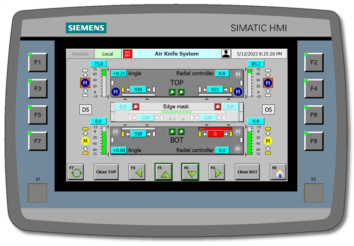 HMI-Entwicklung für SIEMENS Mobile Panel zur Bedienung von AirKnifes im Local Mode.